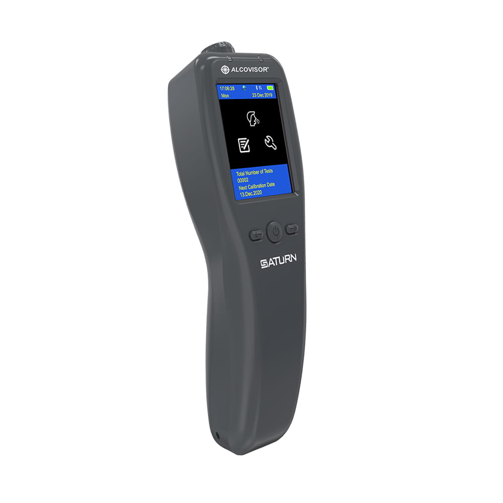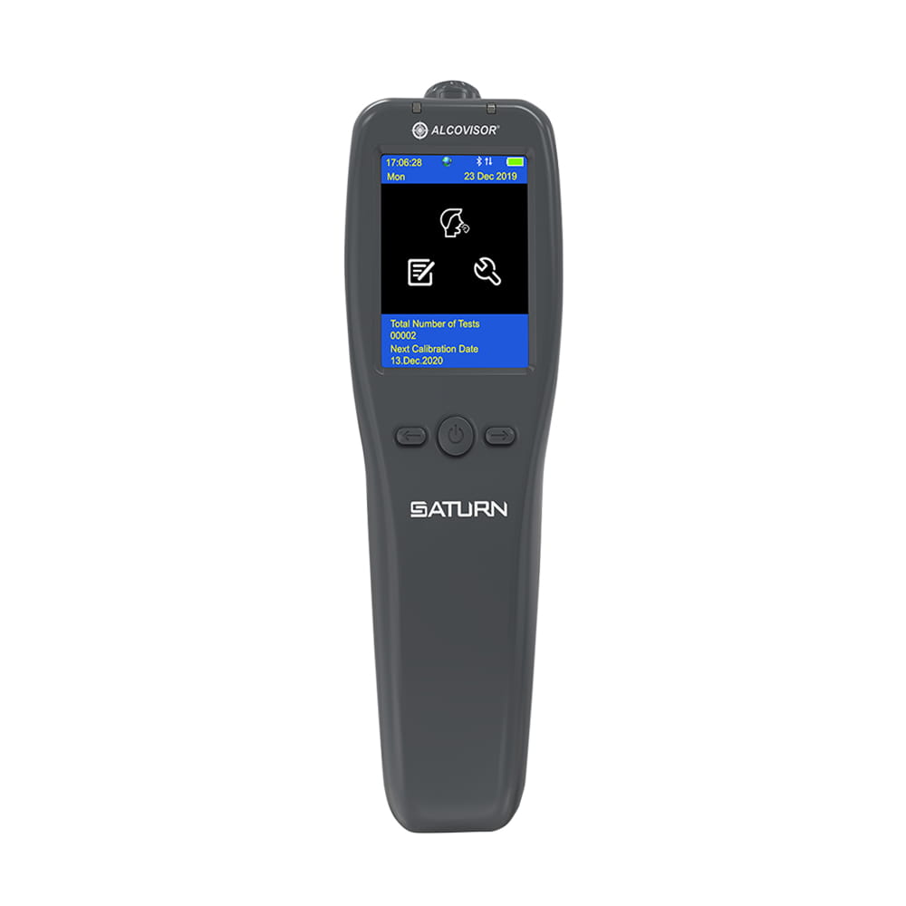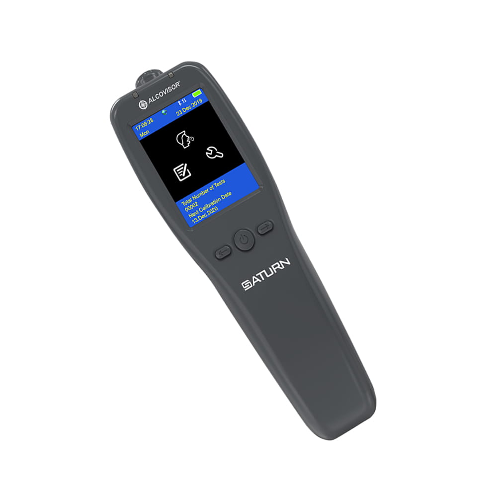 Alkomat ALCOVISOR SAURN to nowoczesne urządzenie pozwalające na precyzyjny pomiar stężenia alkoholu we krwi, wykorzystując analizę wydychanego powietrza. Wbudowana technologia Bluetooth 4.0 daje możliwość natychmiastowego połącznia się urządzeniami posiadającymi system operacyjny Android lub iOS. Pozyskany wynik wyświetla się na ekranie smartfonu w ciągu kilku sekund. Wystarczy jedynie pobrać darmową aplikację i sparować telefon z urządzeniem.