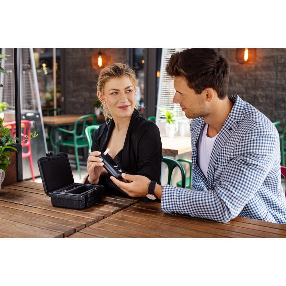 Dokładność pomiaru gwarantuje bardzo czuły sensor, który wychwytuje wyłącznie cząsteczki alkoholu z pobieranej próbki, dzięki czemu nie ma możliwości by zostały one zakłócone innymi substancjami z otoczenia.