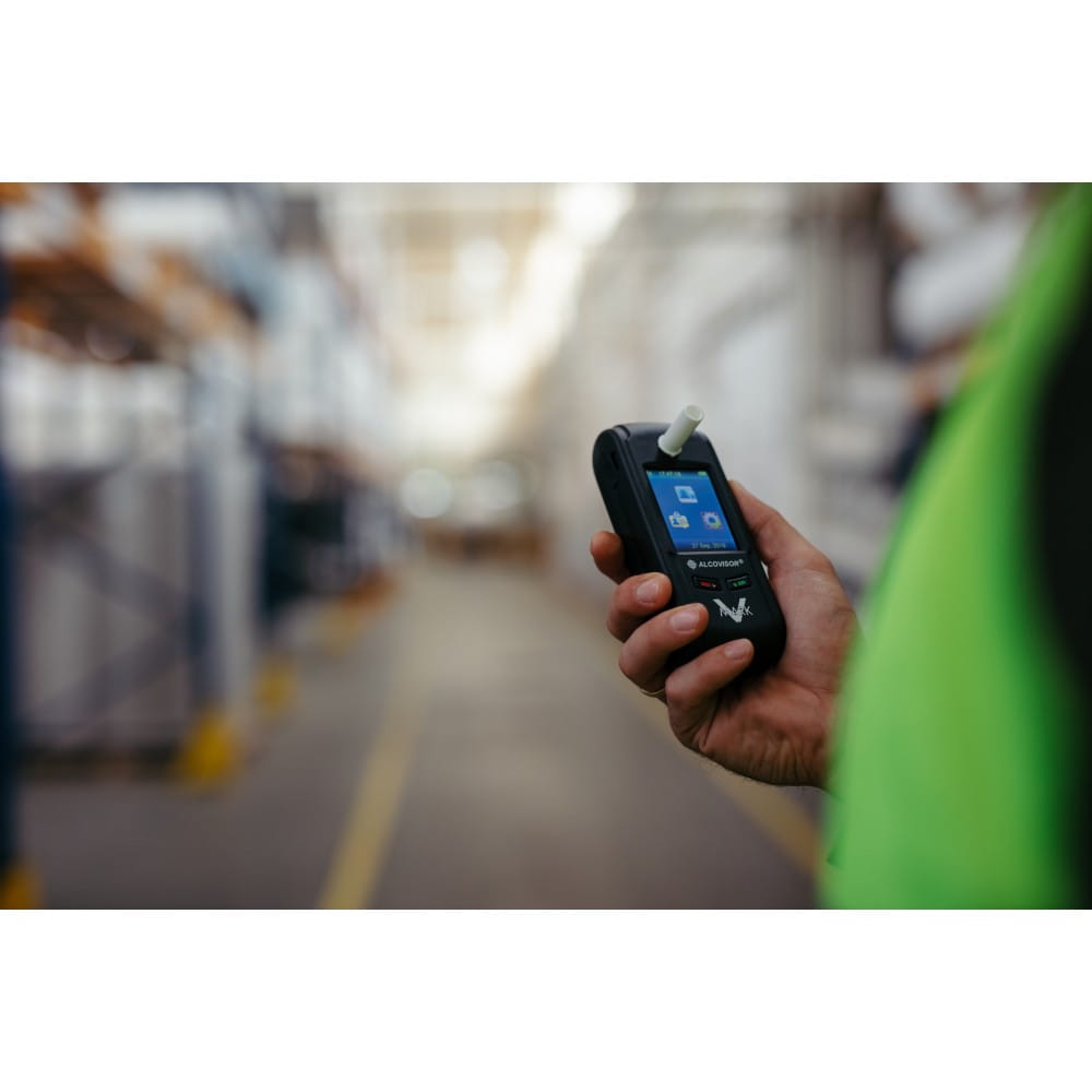 Alkomat Alcovisor® Mark V+ posiada również pojemną pamięć wbudowaną, która jest w stanie zapisać aż 10.000 prób z przypisaną datą i godziną przeprowadzonego badania oraz wybranym przez użytkownika trybem pomiaru. Testujący ma również wybór, czy pozyskane wyniki mają zostać zapisane w pamięci urządzenia, czy przekazać je do wydruku, jeśli alkomat podłączony jest do mobilnej drukarki.