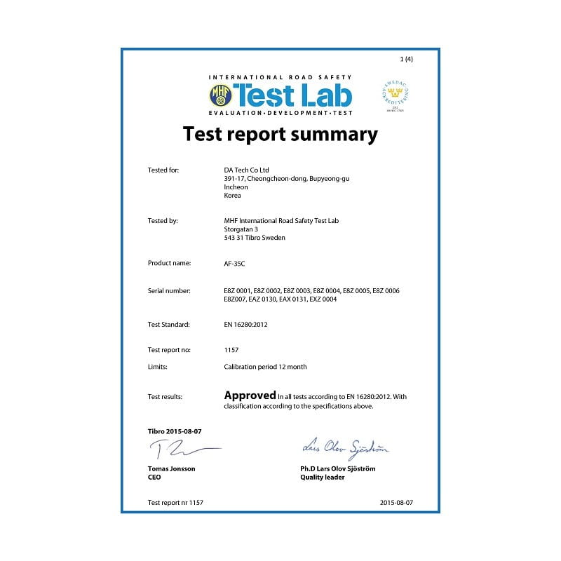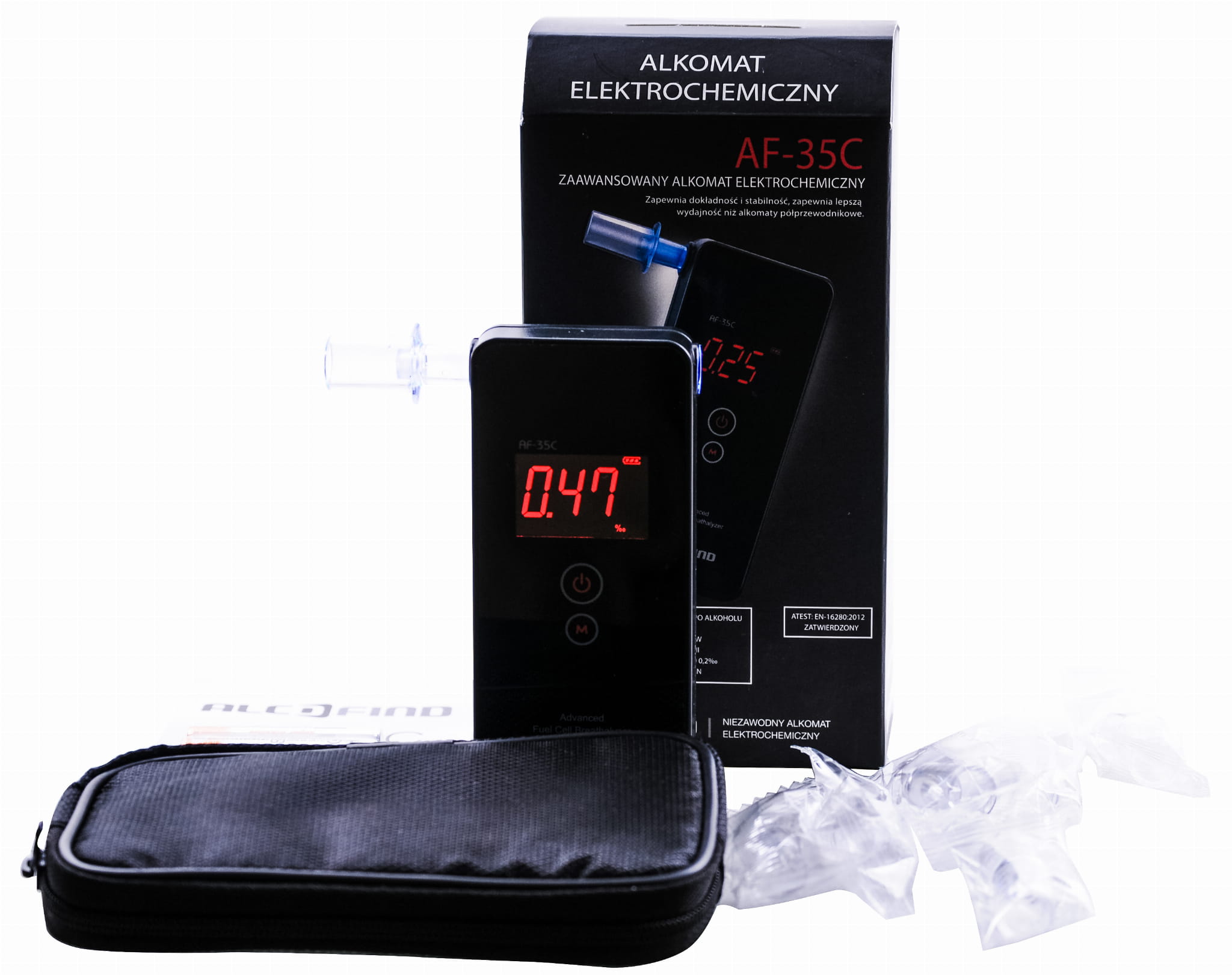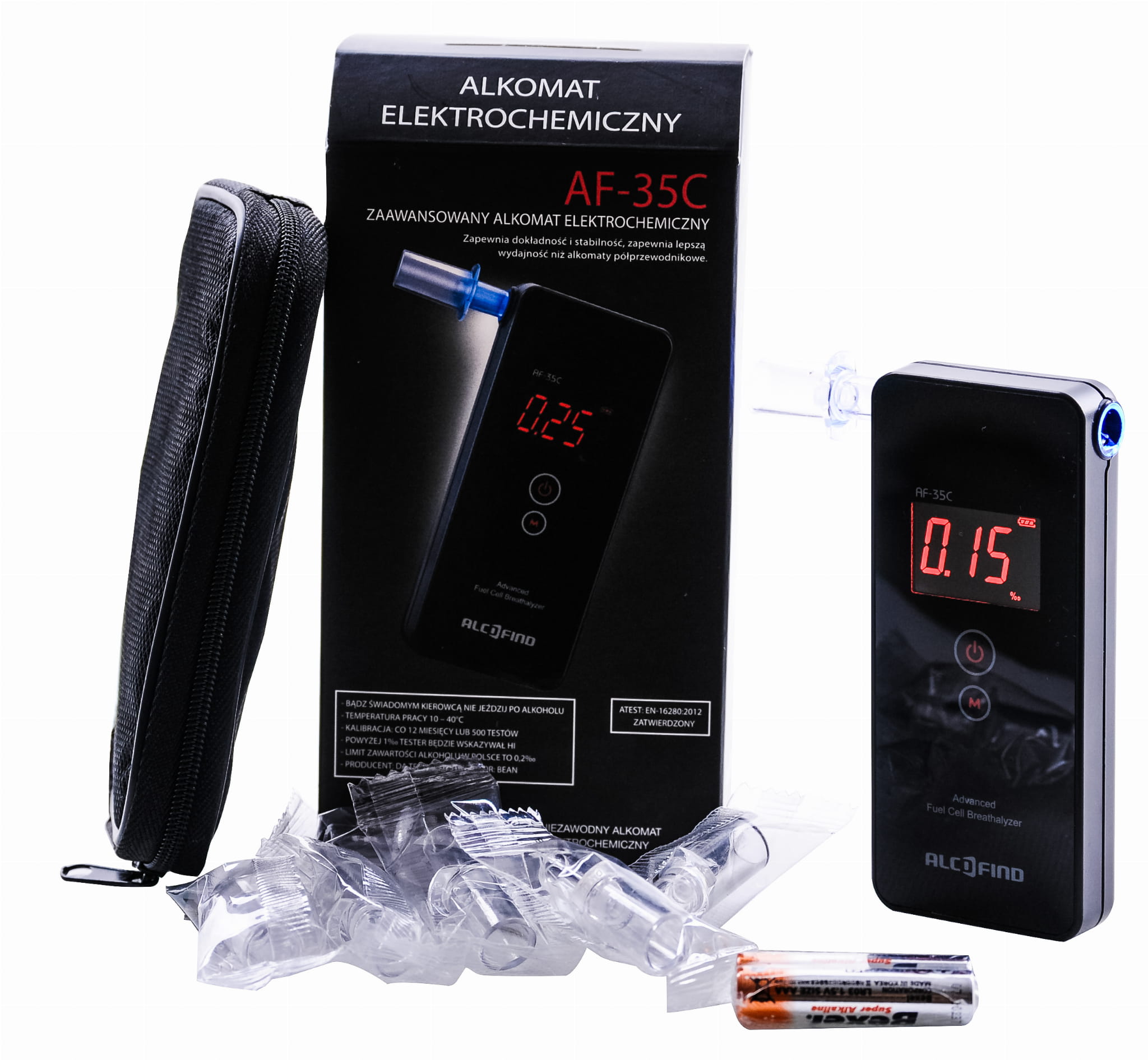 AlcoFind AF-35C jest precyzyjnym i poręcznym alkomatem znanej koreańskiej firmy DaTech. Wysoką dokładność pomiaru zawdzięcza nowoczesnemu, zaawansowanemu sensorowi elektrochemicznemu. Jego stabilne działanie zostało potwierdzone Europejskim Atestem Normy EN-16280. Jest to jeden z najlepszych modeli alkomatów do użytku osobistego o doskonałym stosunku jakości do ceny. Sprawdzi się również w małej firmie jako urządzenie do kontrolnych pomiarów trzeźwości.
