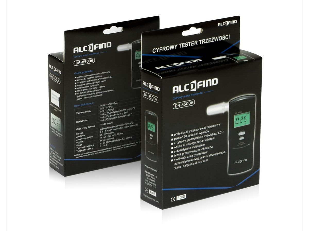AlcoFind to marka znana z precyzji i niezawodności w świecie alkomatów. Jej urządzenia łączą elegancki design z zaawansowaną technologią pomiarową, co zapewniło firmie uznanie zarówno wśród użytkowników indywidualnych, jak i profesjonalistów. Jednym z flagowych modeli jest alkomat elektrochemiczny DA-8500E – ceniony za dokładność i trwałość. AlcoFind nieustannie podnosi poprzeczkę, oferując sprzęt wyróżniający się niezawodnością i intuicyjną obsługą.