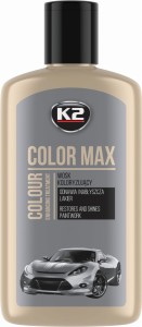 K2 Color Max wosk koloryzujący srebrny doskonale odświeża wygląd i ożywia kolor zarówno w przypadku nowych jak i starszych lakierów. Przeznaczony jest dla użytkowników, którzy chcę poprawić stan lakieru, bez wykonywania korekty powłoki lakierniczej za pomocą polerki mechanicznej. K2 Color Max wosk koloryzujący srebrny może być alternatywą dla popularnej "kredki" do wypełniania rys.