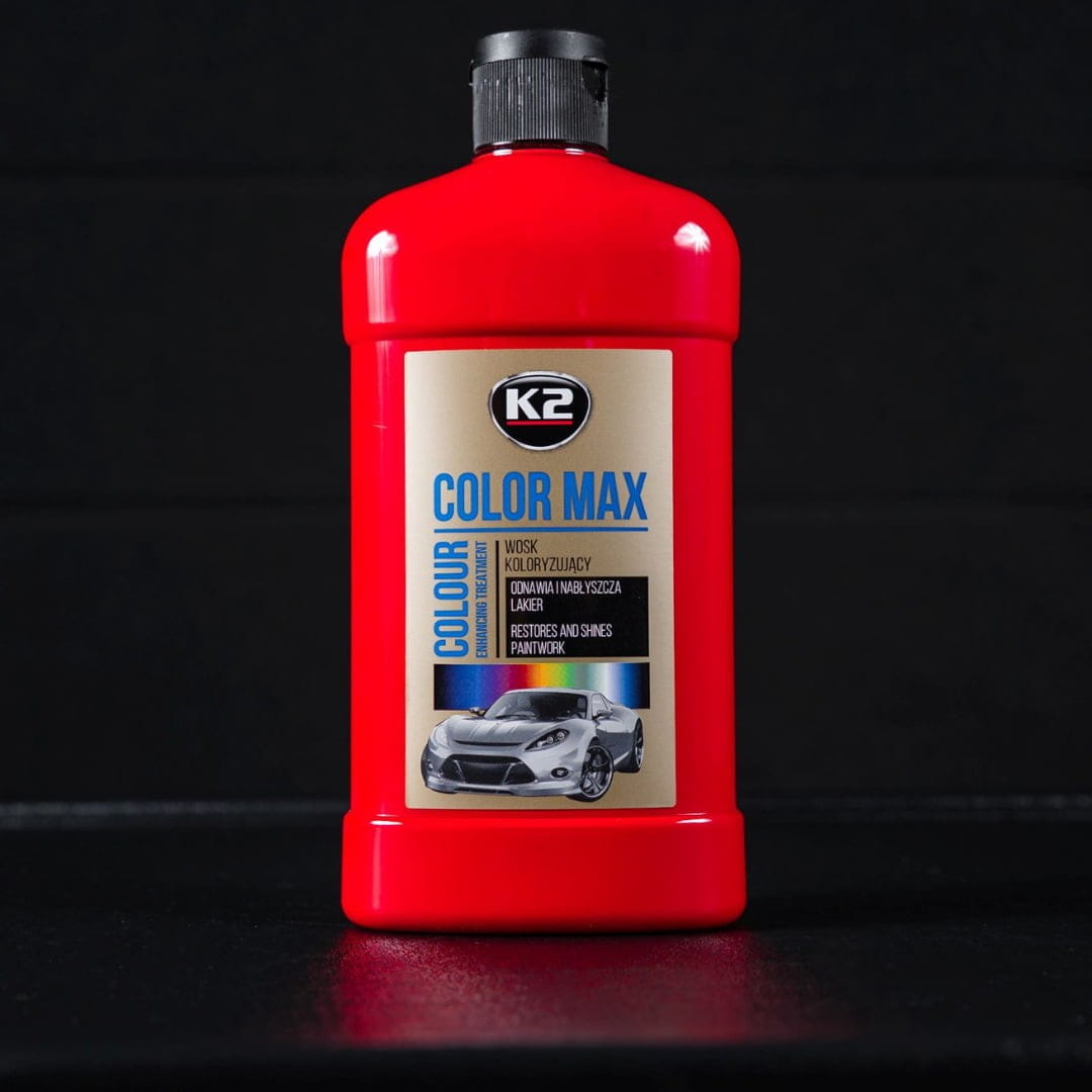 K2 Color Max - wosk koloryzujący dostępny w 9 popularnych kolorach. Nadaje się do wszystkich typów lakierów samochodowych, również metalizowanych. Doskonale ożywia kolor, a dzięki zawartości wosku Carnauba przywraca dawny połysk lakieru.