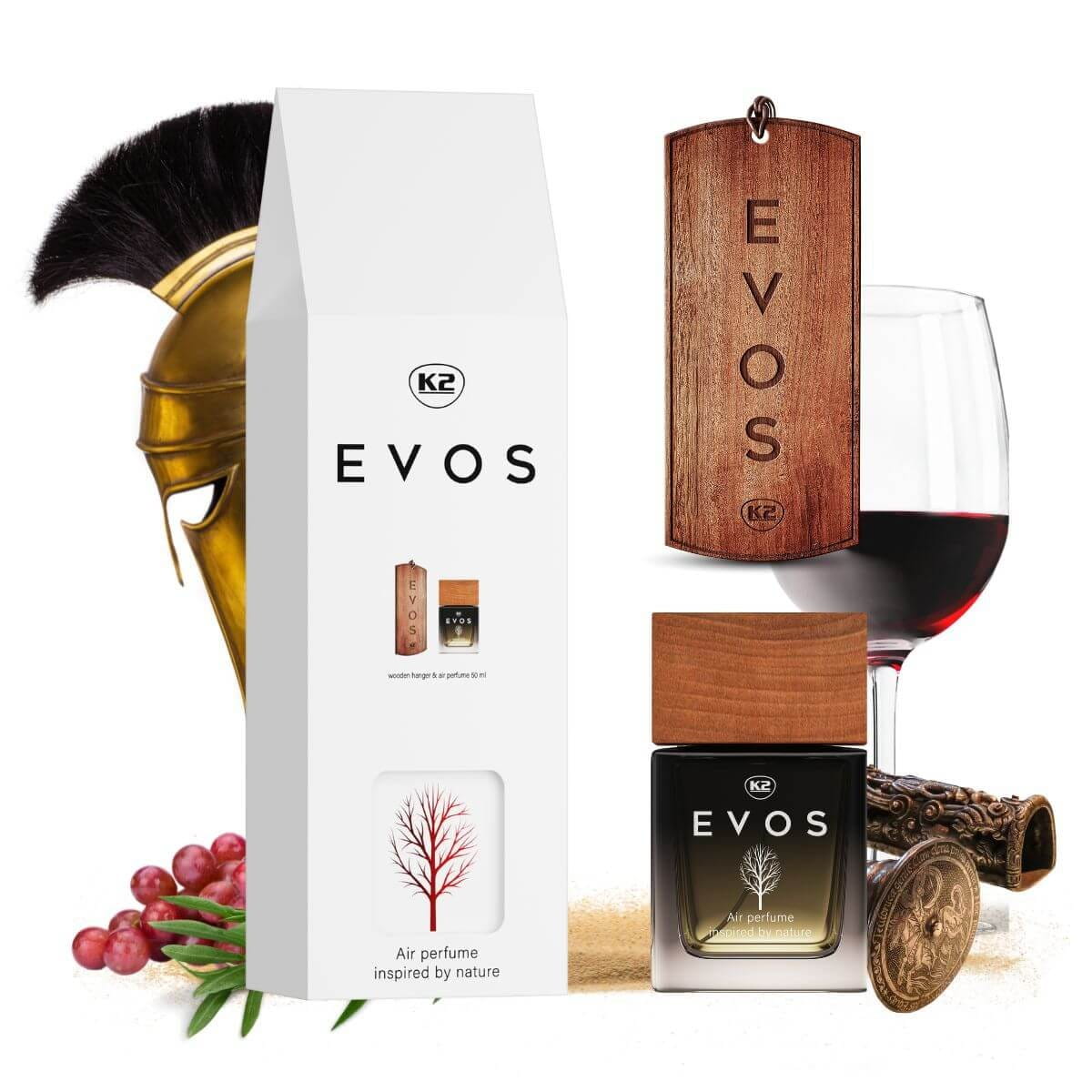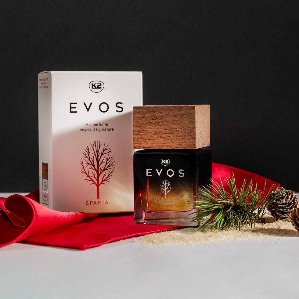 Perfumy do samochodu K2 EVOS to inspirowana naturą, niezwykła kompozycja wyjątkowych nut zapachowych, zaprojektowana z myślą o wnętrzach nowoczesnych aut.