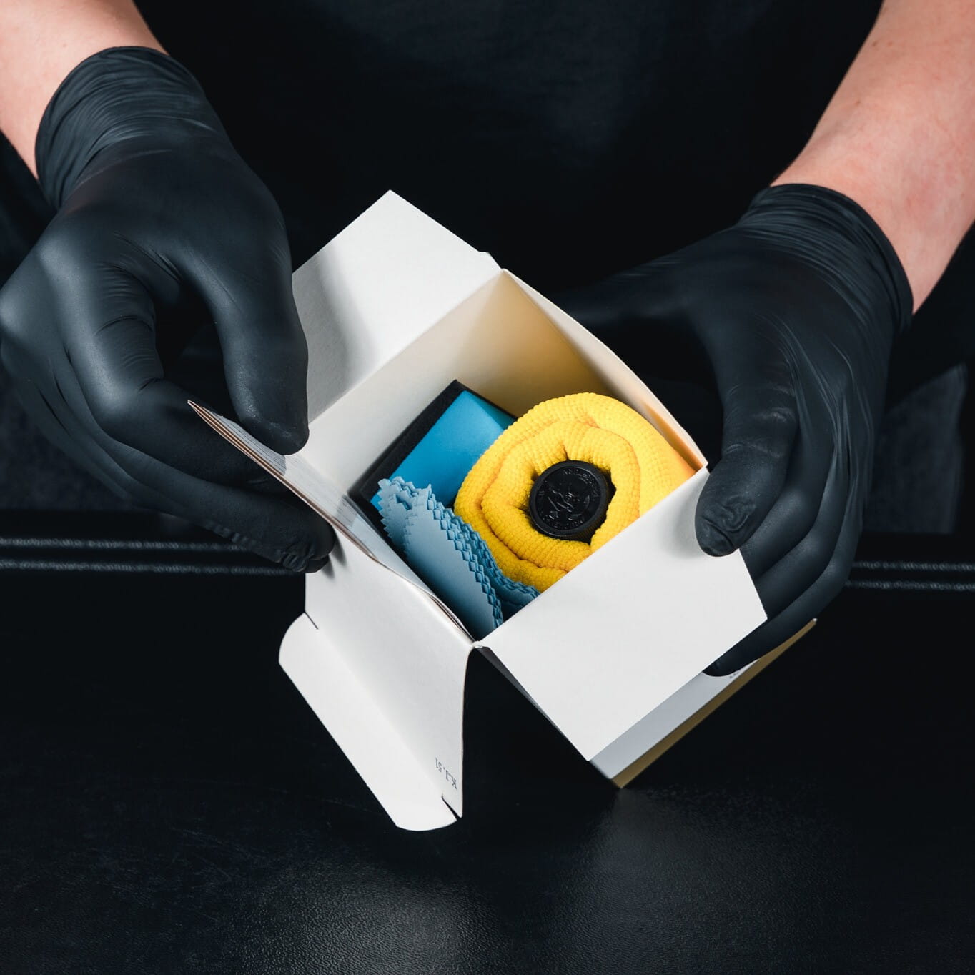 - Po 1-2 minutach od nałożenia w temp. ok. 20°C, wypolerować powierzchnie przy pomocy mikrofibra(wyższa temperatura skraca czas schnięcia, niższa wydłuża). Nie dopuszczać do wyschnięcia powłoki na lakierze.