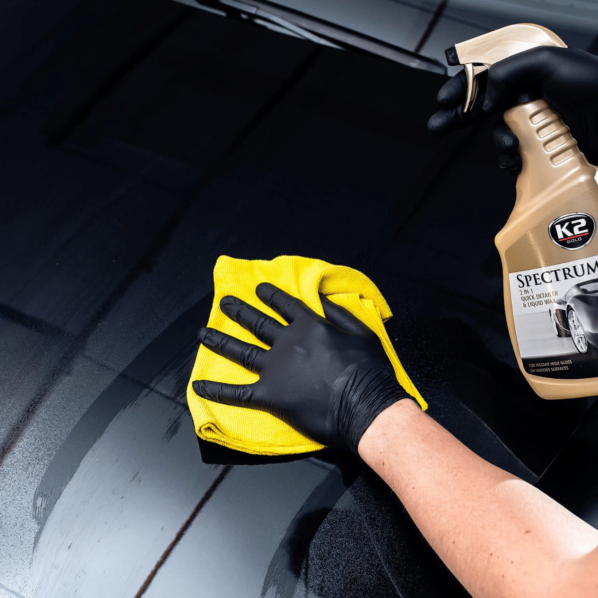 K2 SPECTRUM to unikalny, syntetyczny wosk w płynie (Quick Detailer), którego celem jest szybkie nabłyszczanie lakieru auta. Doskonale sprawdza się w sytuacjach kiedy w krótkim czasie chcemy nadać połysk i odświeżyć wygląd całego samochodu. Zapewnia natychmiastowy i spektakularny efekt.