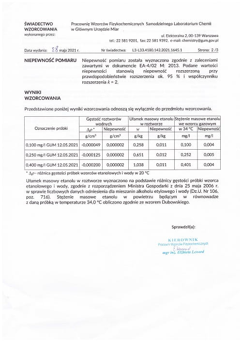 - Testy kontrolne: Po zakończeniu kalibracji warto wykonać kilka testów kontrolnych, aby upewnić się, że urządzenie działa prawidłowo. Możesz to zrobić, wykonując testy na znanych stężeniach alkoholu, które powinny odpowiadać wymaganiom kalibracyjnym.