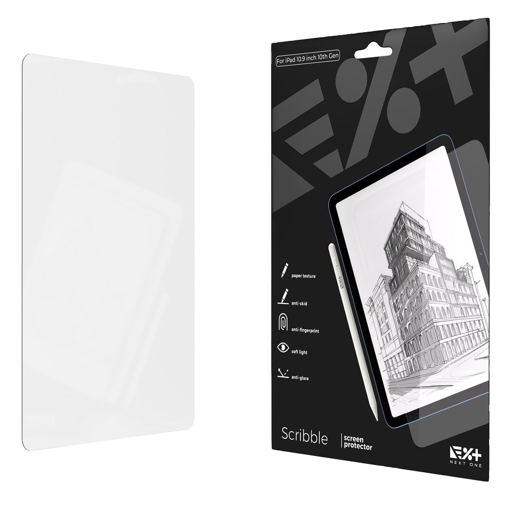 Next One Screen Protector with Paper Texture to folia ochronna dla iPada 10. generacji, która zabezpiecza ekran przed zarysowaniami i zabrudzeniami. Oprócz tego zapewnia wyjątkowe wrażenia podczas pisania i rysowania, niczym na prawdziwym papierze.