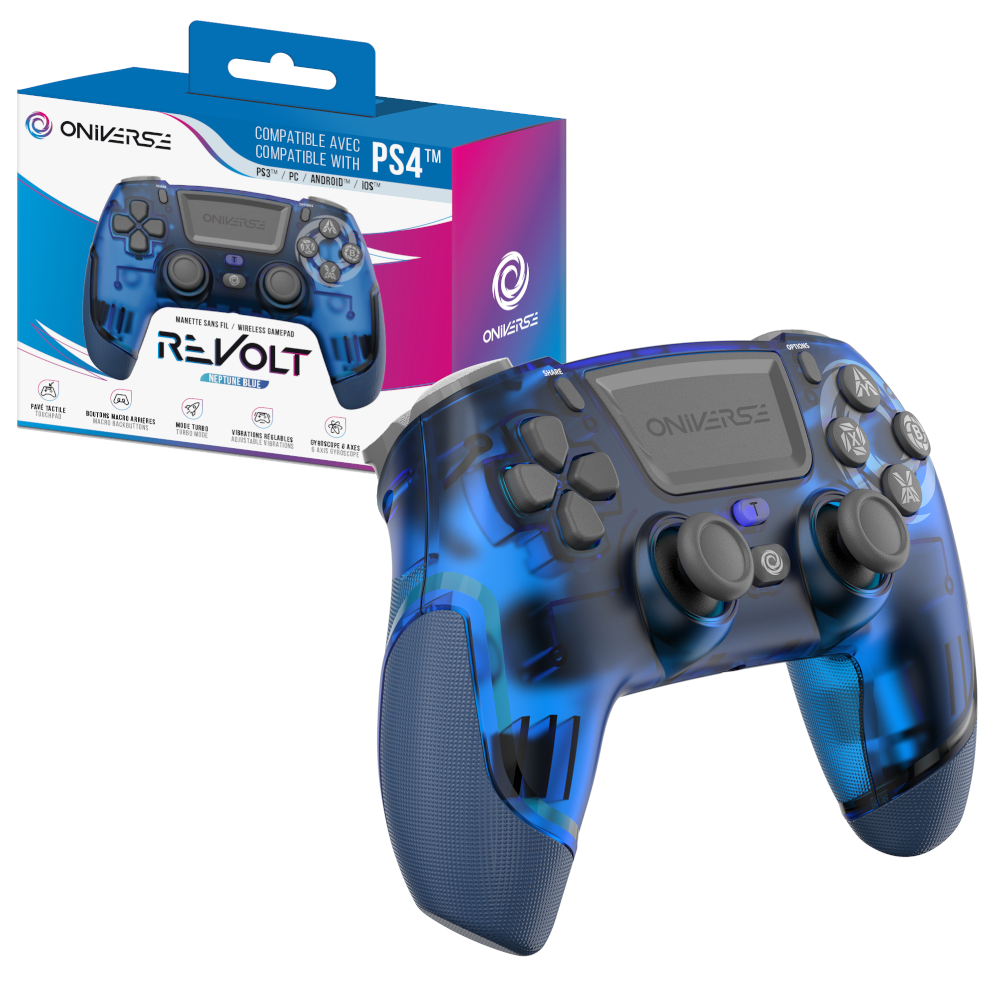 Kontroler Oniverse Revolt to zaawansowane urządzenie przeznaczone do gier, o przezroczystym designie i ergonomicznej konstrukcji. Jest kompatybilny z różnymi platformami, co czyni go uniwersalnym narzędziem dla graczy.