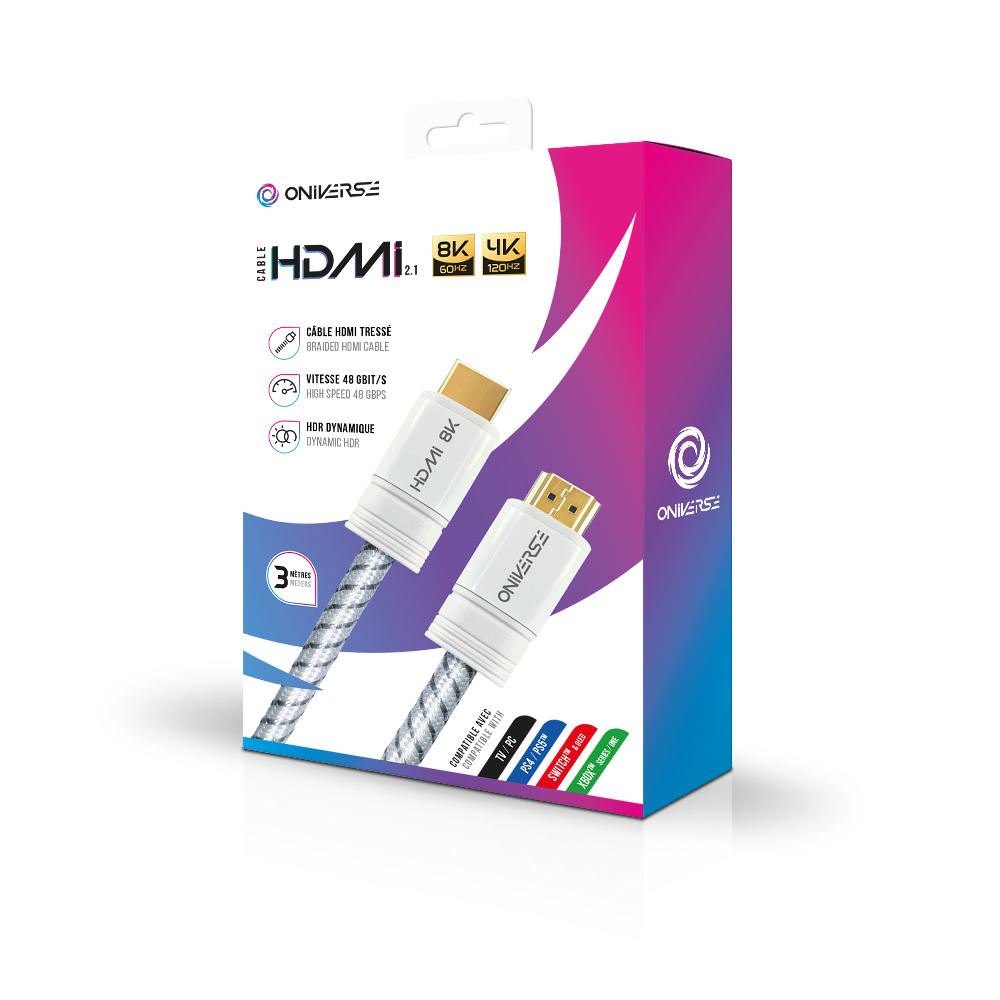 Kabel Oniverse HDMI 2.1. 8K to akcesorium, które oferuje szybki przesył danych oraz solidne wykonanie. Sprawdzi się zarówno do oglądania filmów w jakości 8K, jak i grania na konsolach. Jest kompatybilny z szeroką gamą sprzętów.