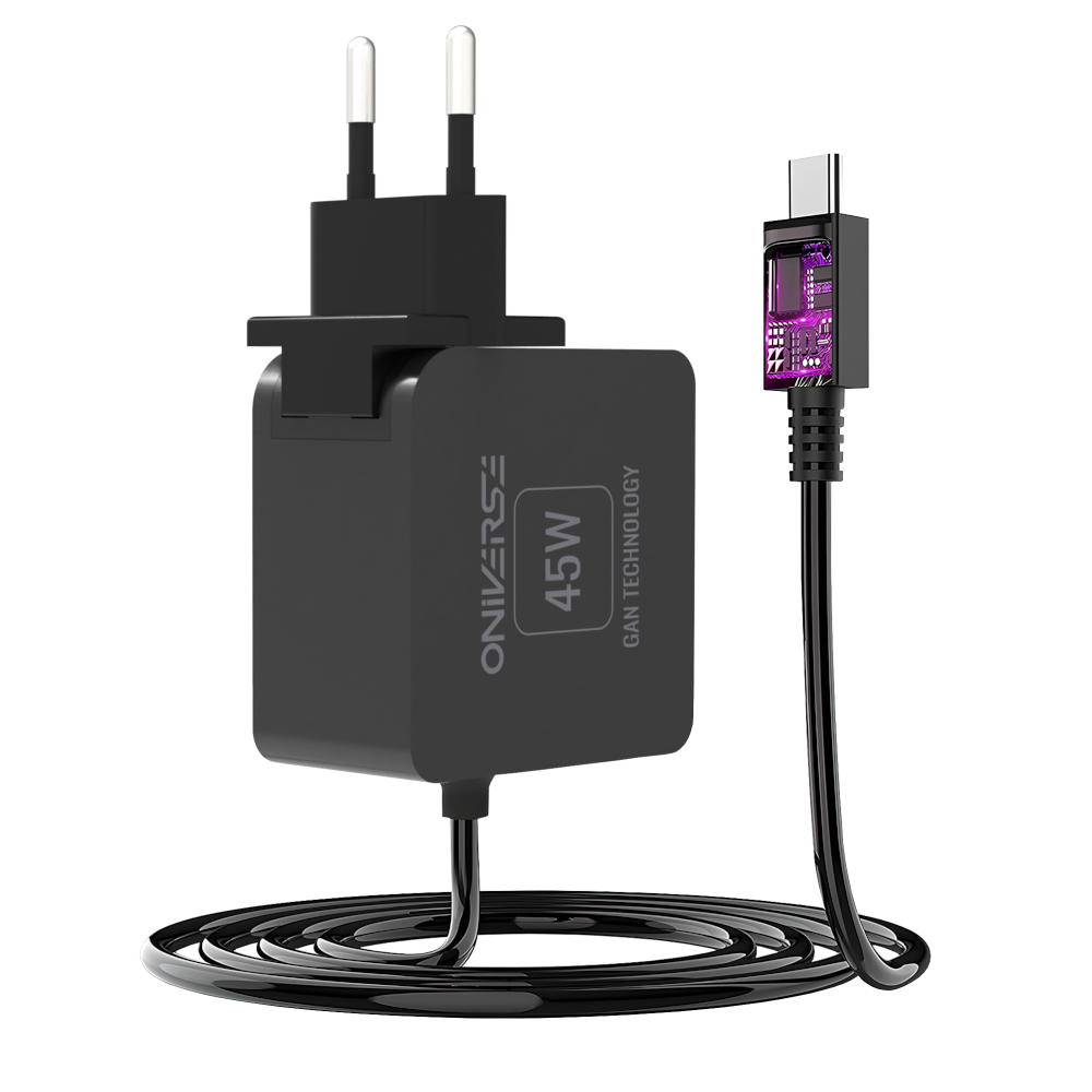 Oniverse Ładowarka USB-C 45W Rapid International Charger to kompaktowe i wydajne akcesorium, które pozwala na szybkie ładowanie konsoli Nintendo Switch, Steam Decka, smartfonów z Androidem i laptopów. Ma szereg funkcji, które zapewniają bezpieczeństwo i wygodę użytkowania.