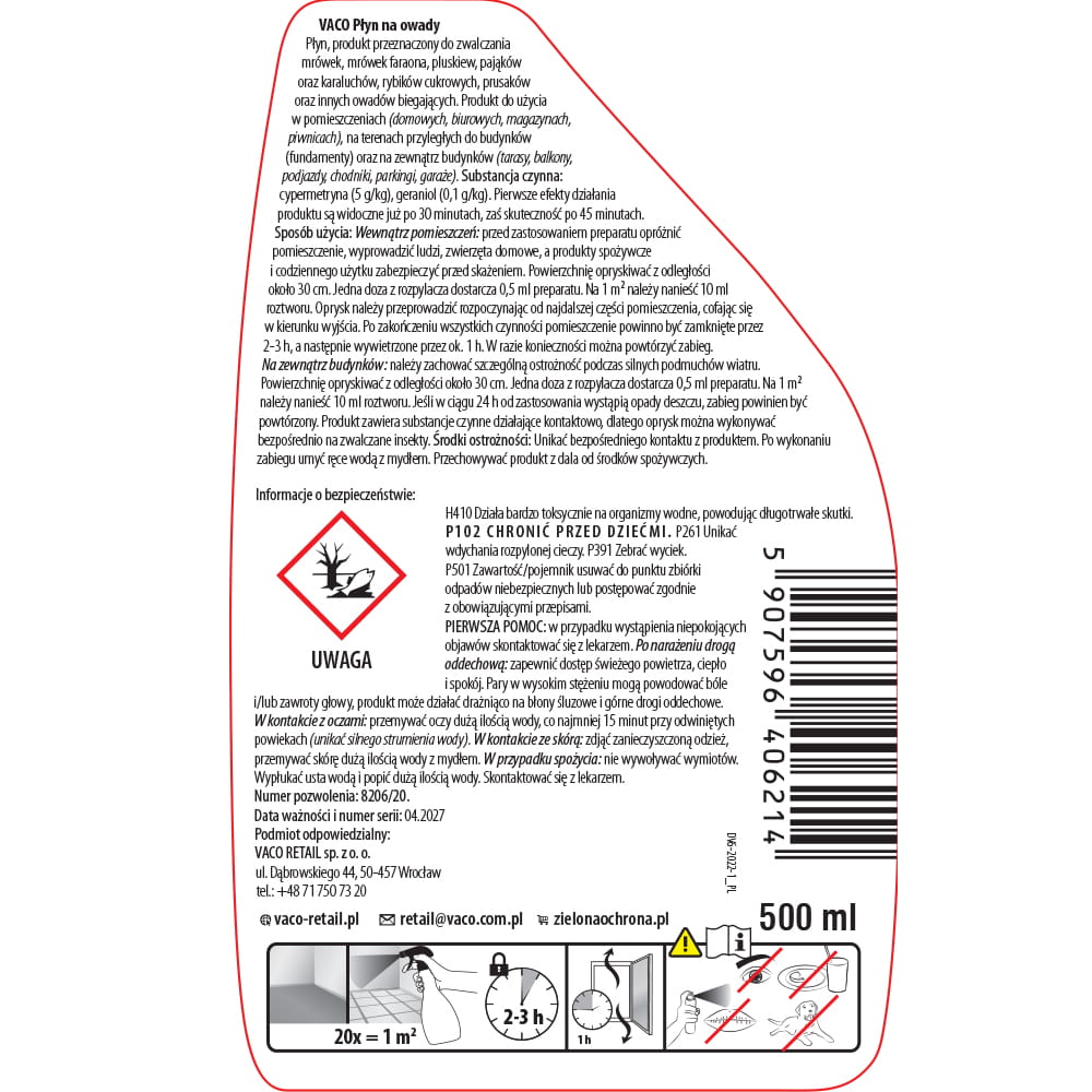 Uniwersalny środek owadobójczy na owady latające i biegające. Może być stosowany wewnątrz pomieszczeń oraz na zewnątrz budynków.