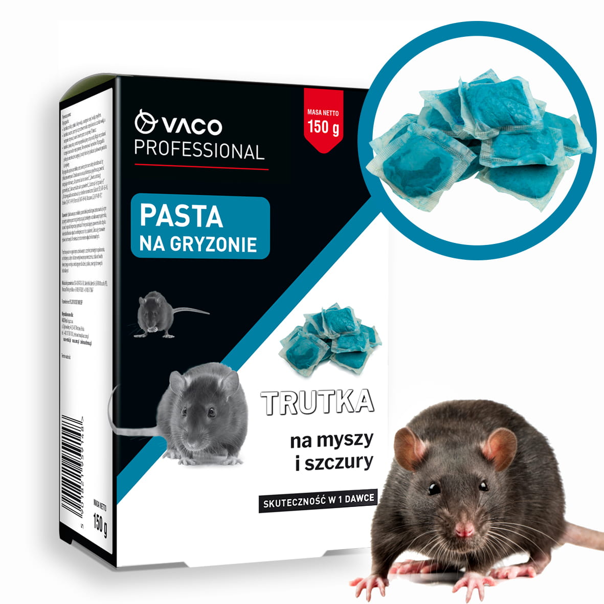 Pasta VACO PROFESSIONAL to niezawodny sojusznik w walce z gryzoniami, który działa szybko i skutecznie. Jeśli masz do czynienia z uciążliwymi szkodnikami, jak szczury wędrowne, szczury śniade czy myszy, nasz produkt zapewni Ci pewną eliminację.