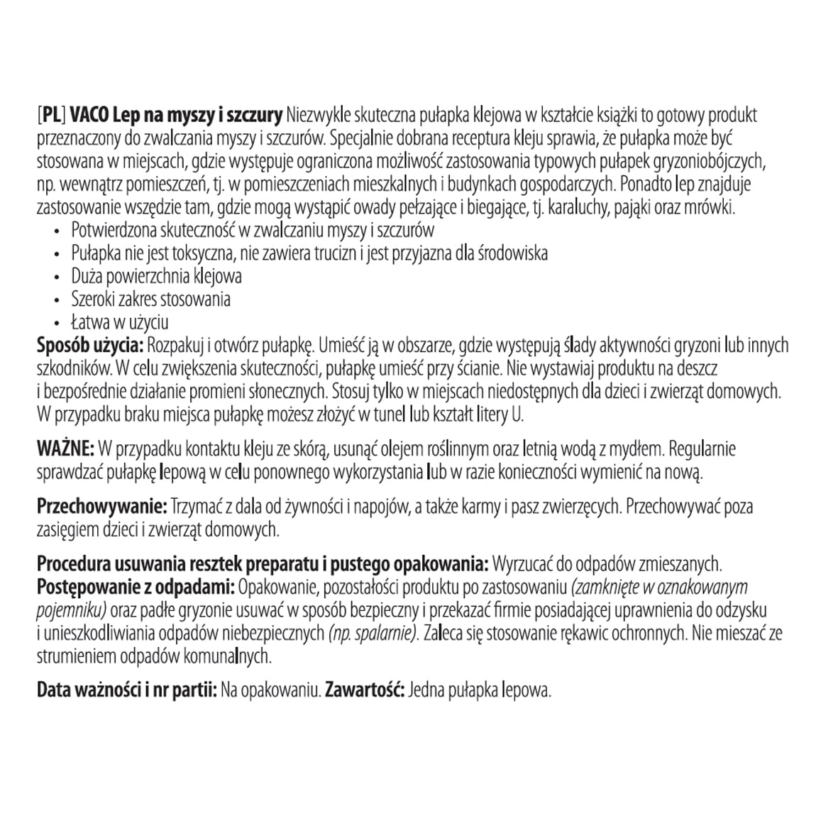 ✅ Bez dodatku chemii: Bezpieczna dla środowiska, ludzi i zwierząt domowych – brak rodentocydów i toksycznych substancji.