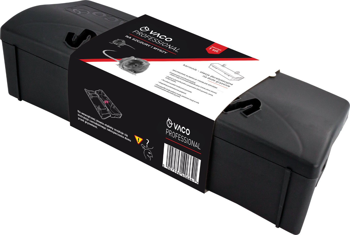 Kompaktowe stacje deratyzacyjne umożliwiają bezpieczne umieszczenie granulatu, chroniąc dzieci i zwierzęta domowe przed przypadkowym kontaktem z trutką. Są łatwe w użyciu i doskonale nadają się do mieszkań, biur oraz innych małych przestrzeni.2x VACO PROFESSIONAL Karmnik - Stacja deratyzacyjna na gryzonie (myszy, szczury) - 1 szt.